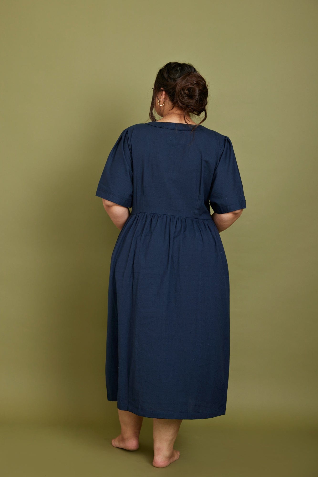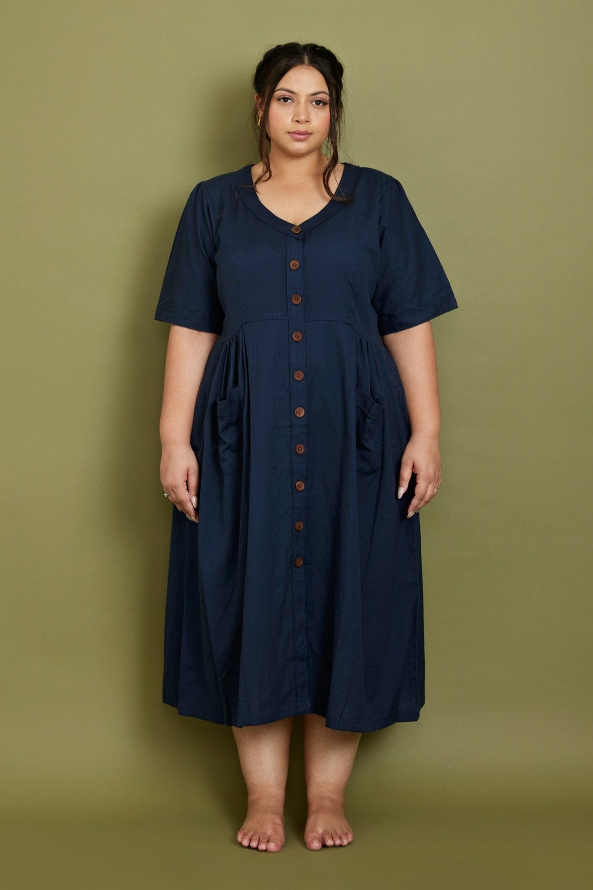 Cotton Flax Dress in Moss Green