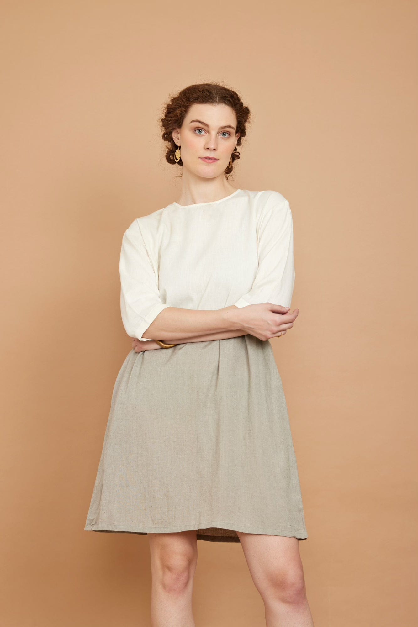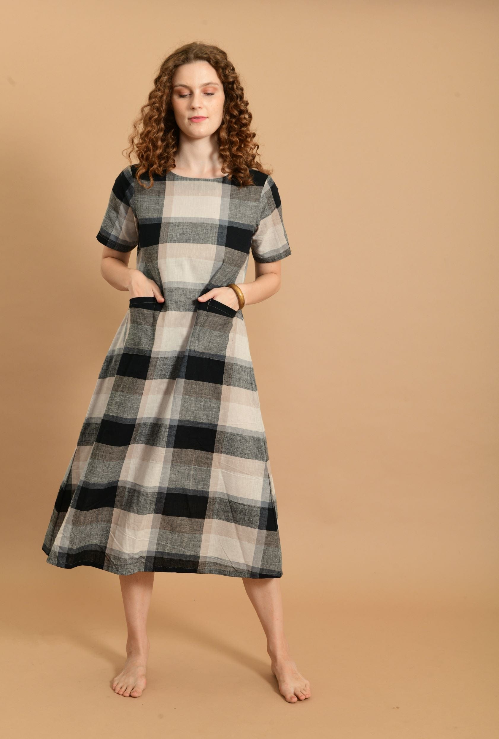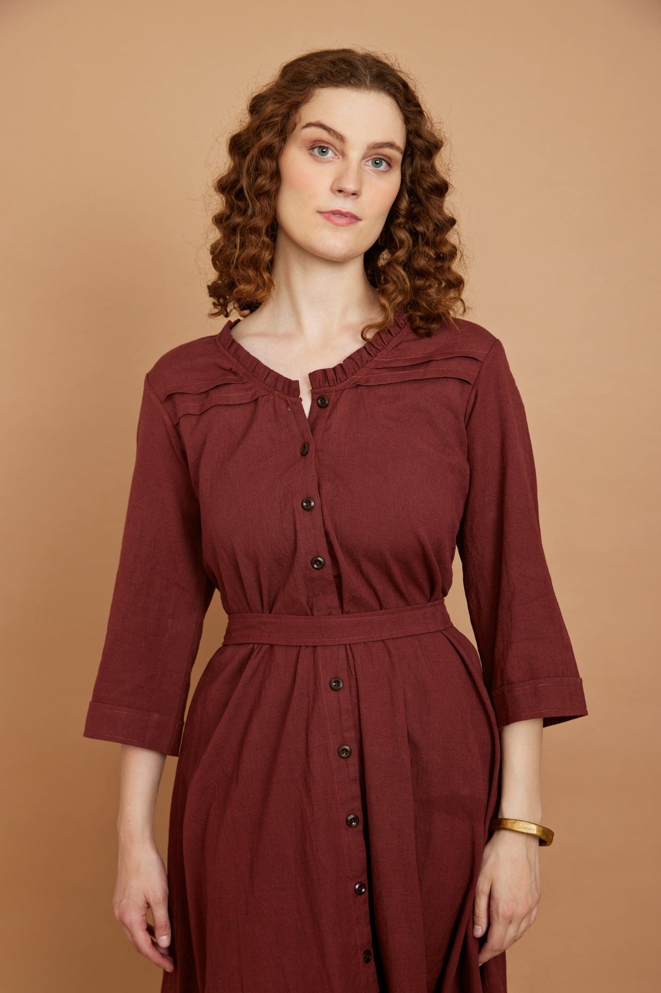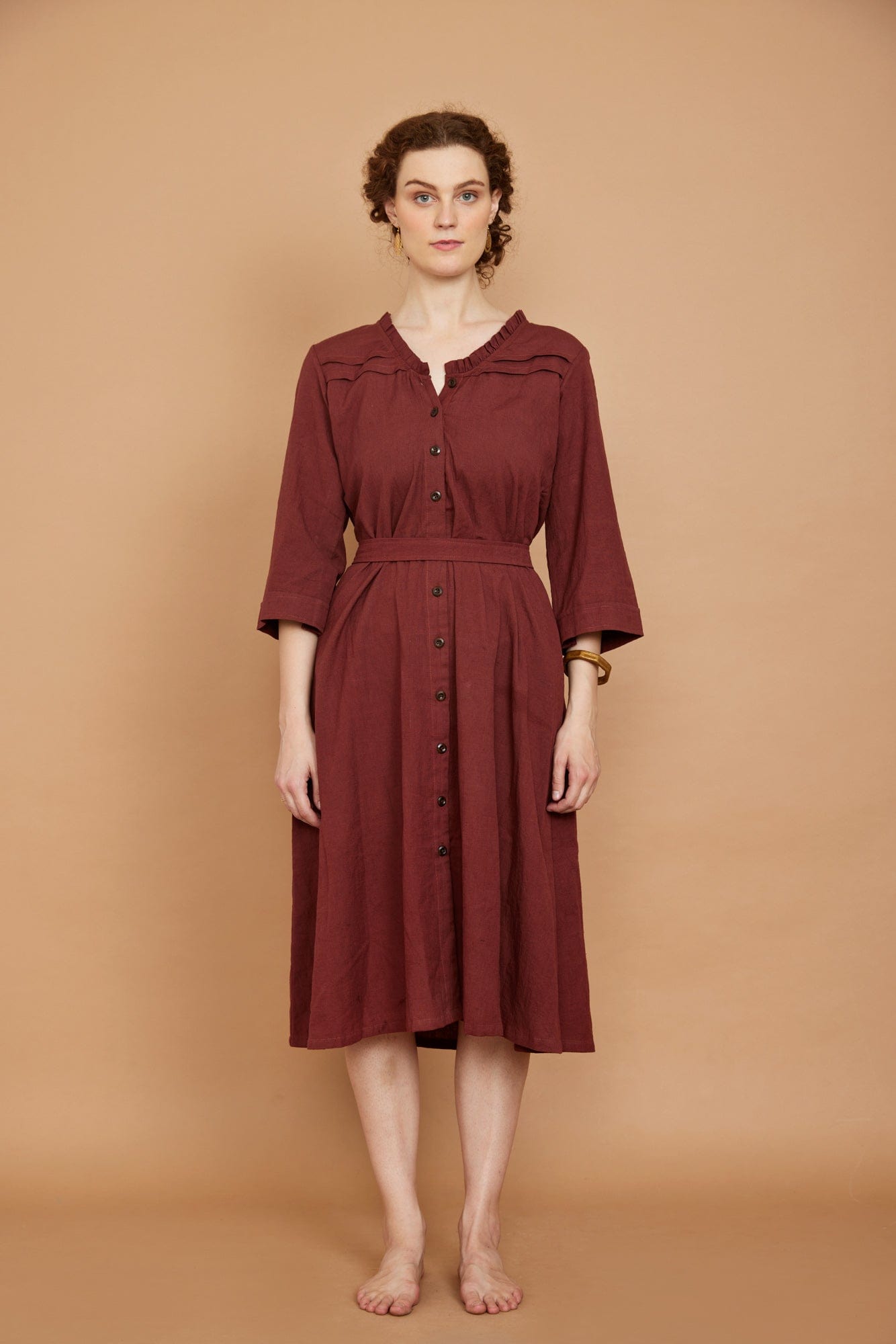 Baumwoll-Flachs-Kleid in Mahagoni-Braun