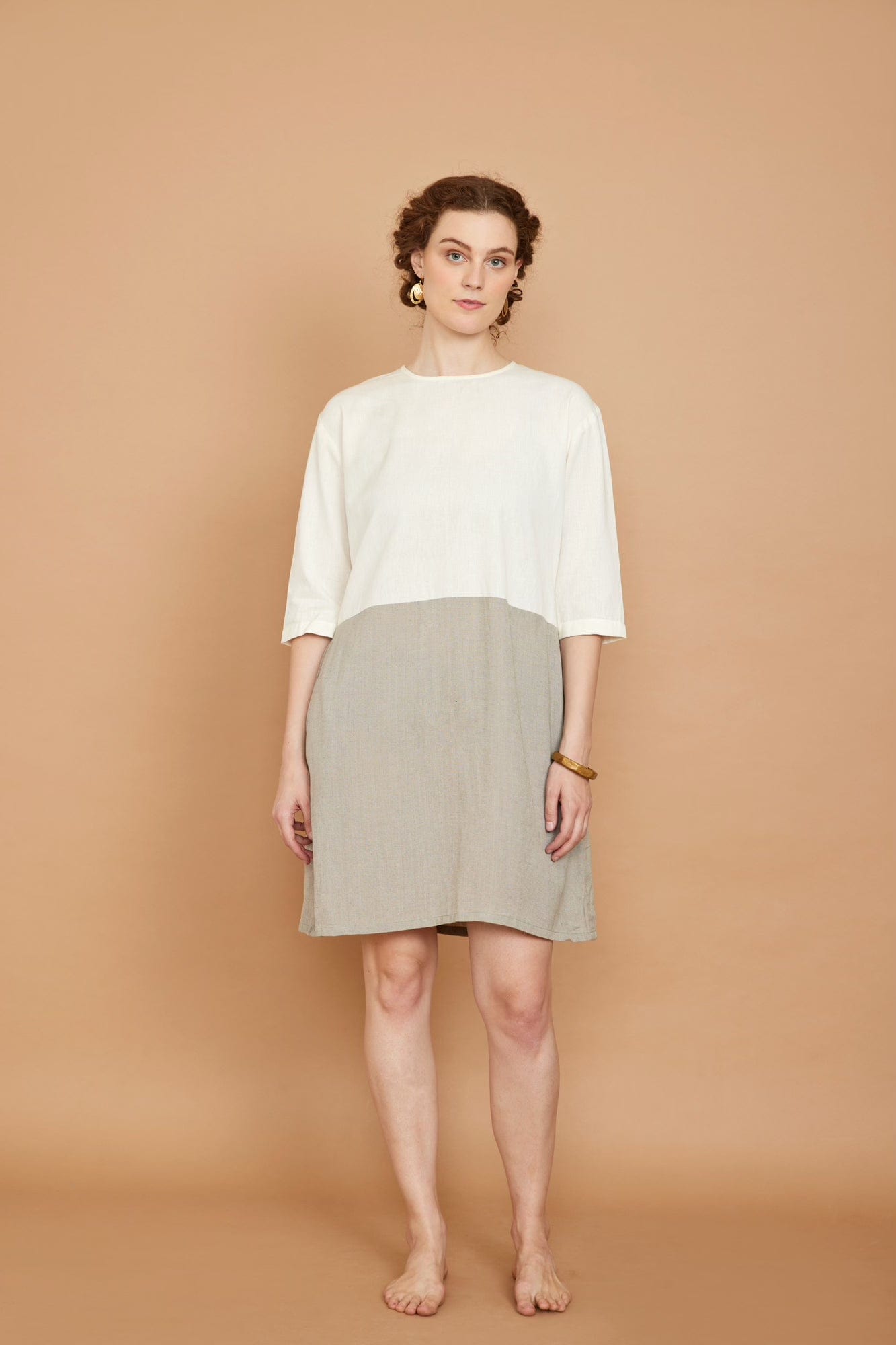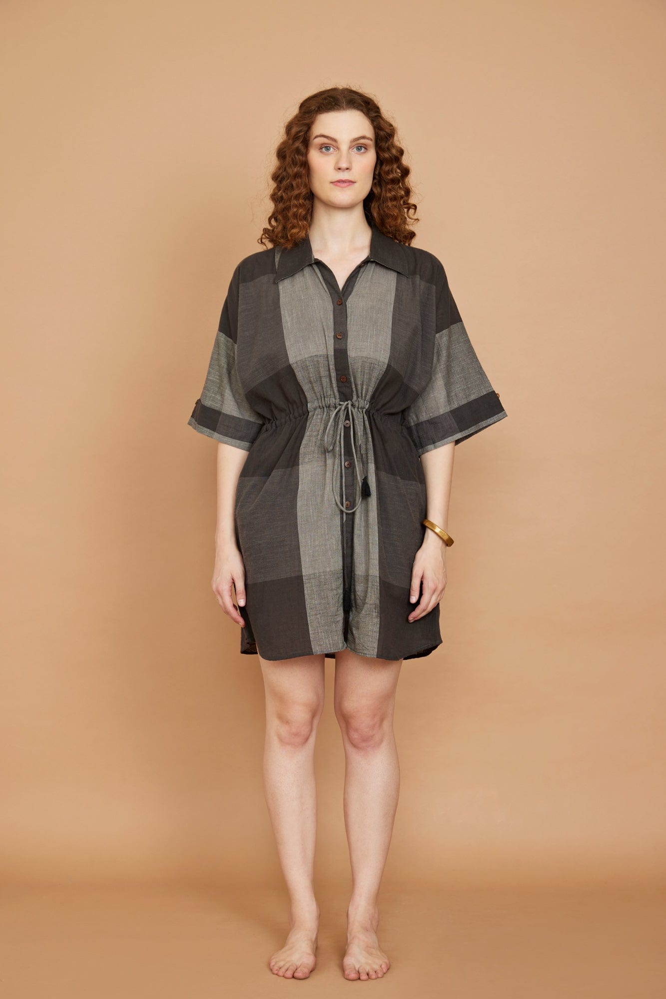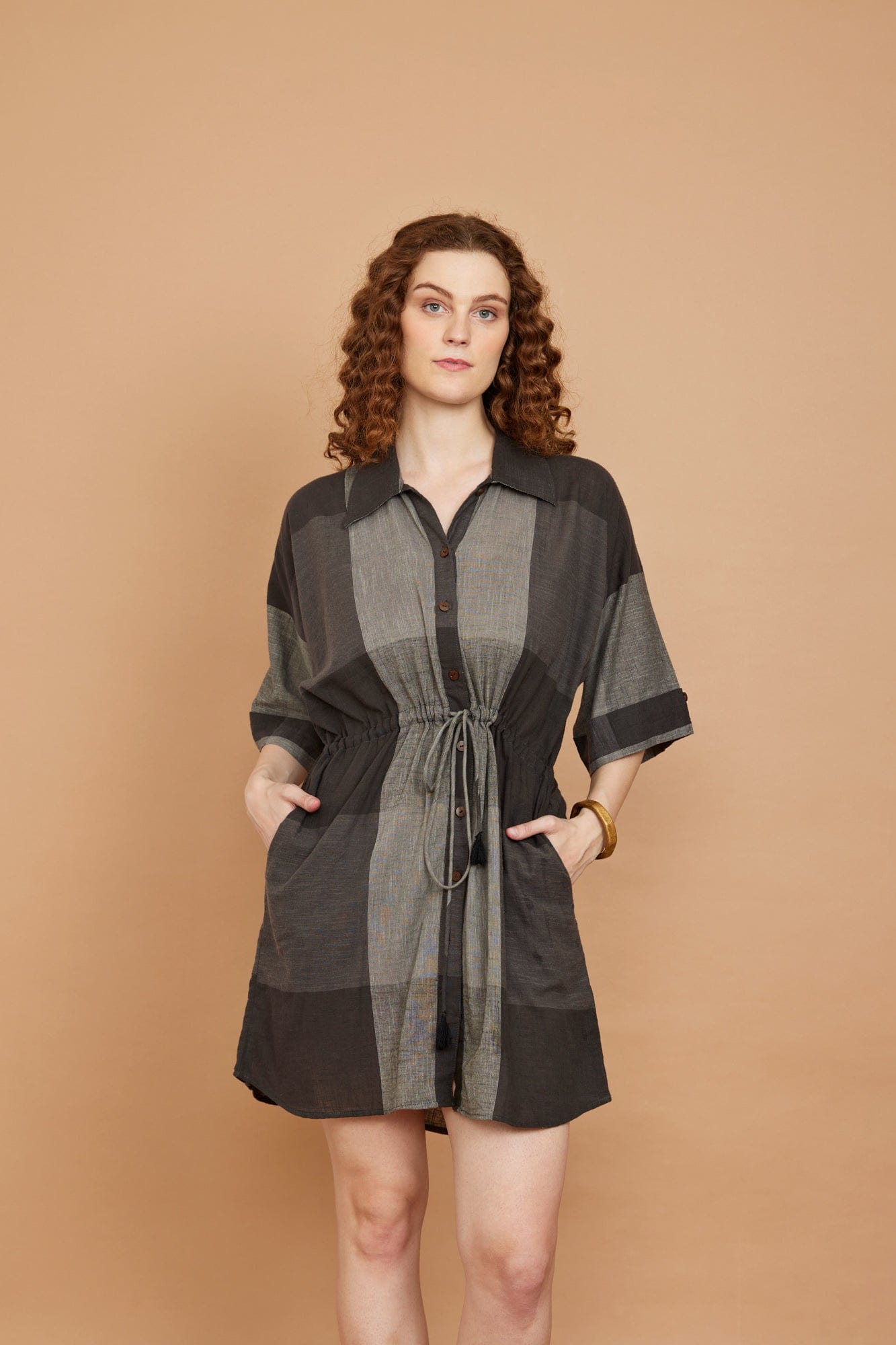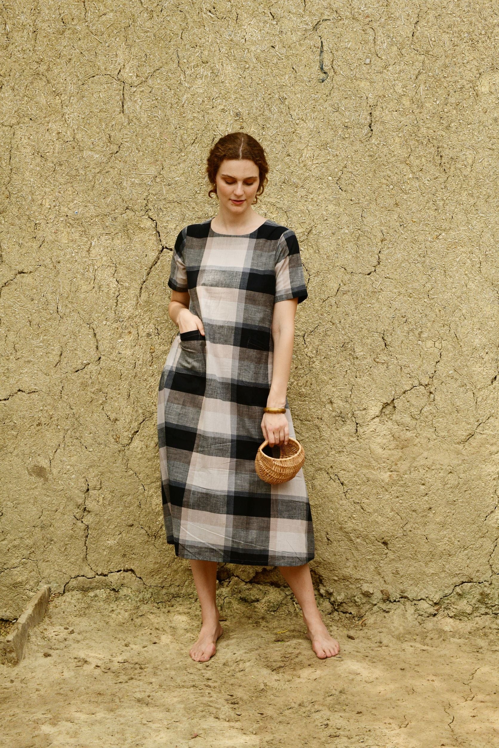 Baumwoll-Flachs-Kleid in Mahagoni-Braun