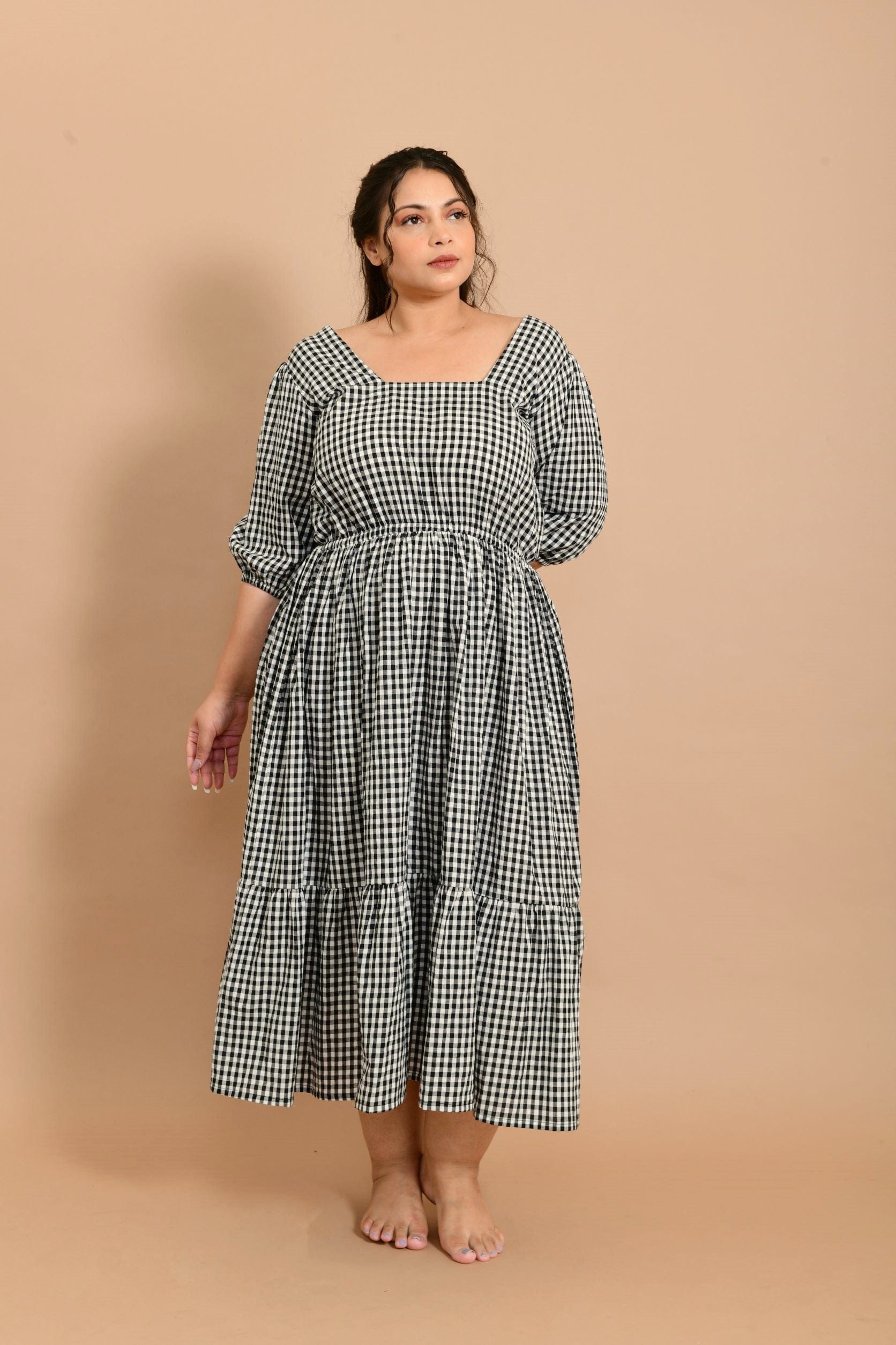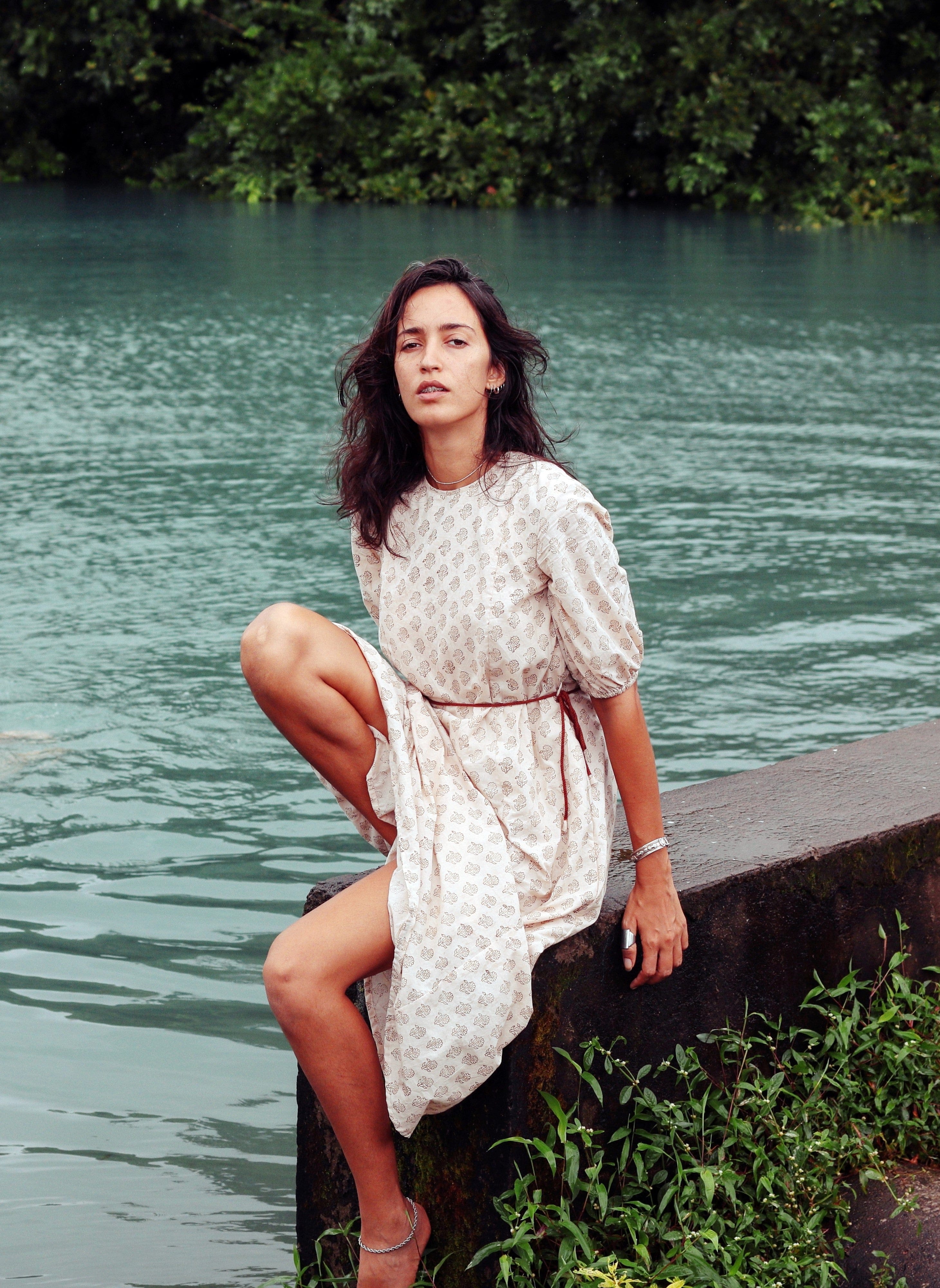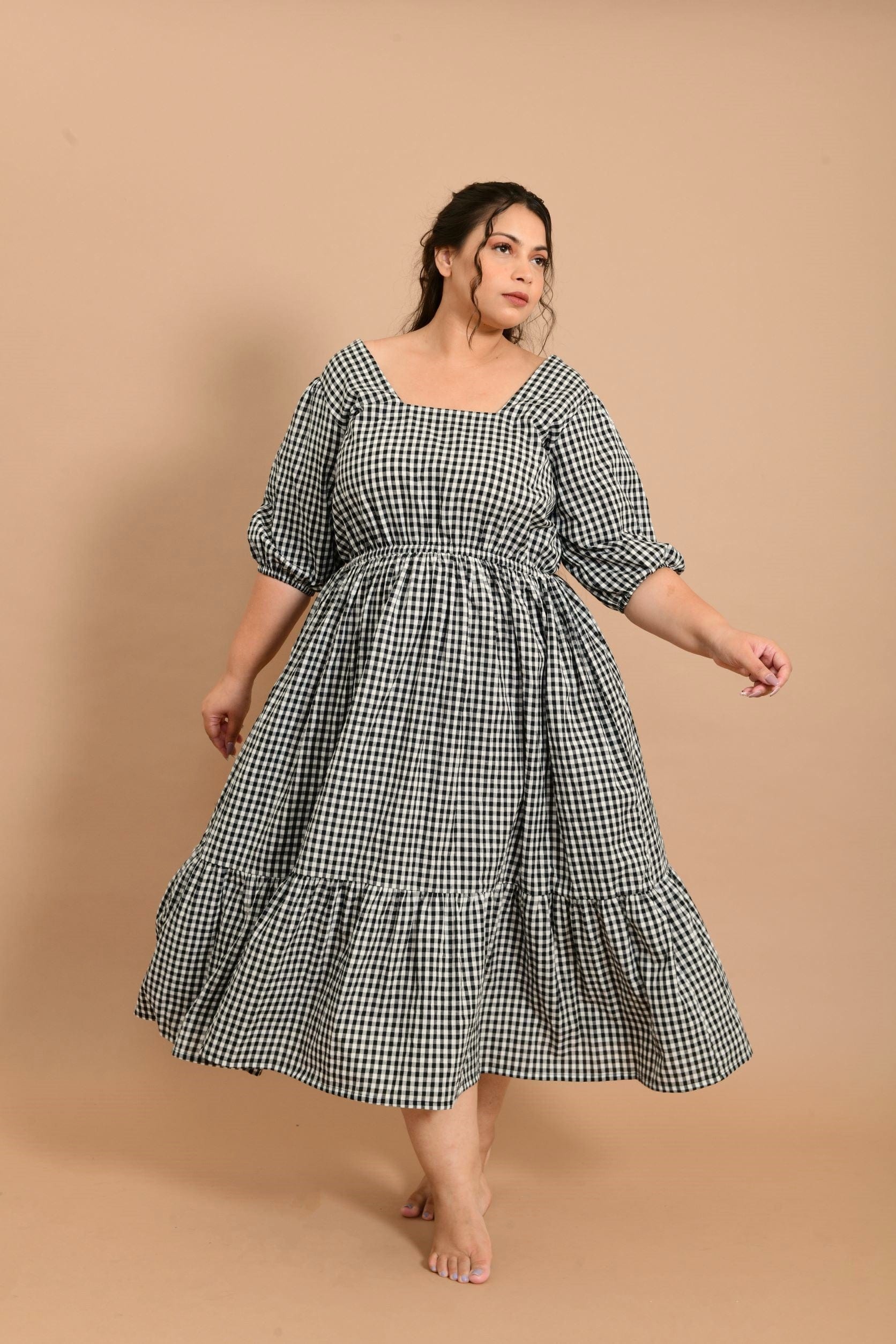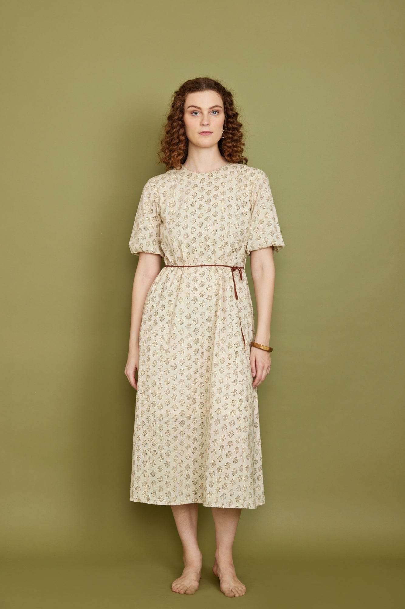 Baumwoll-Flachs-Kleid in Mahagoni-Braun